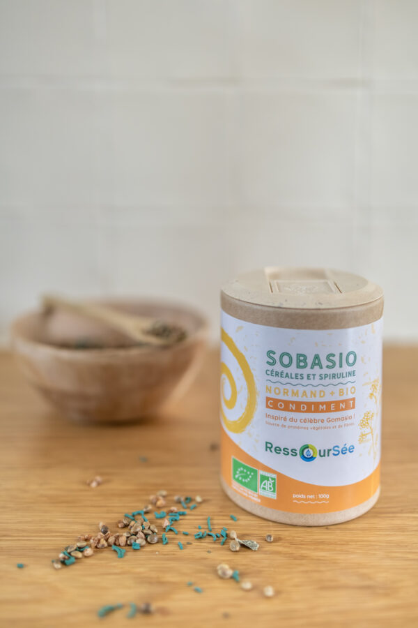 Inspiré du condiment japonais « Gomasio » notre Sobasio (« Soba » pour sarrasin et « sio » pour sel) est un assaisonnement source de protéines végétales, idéal pour remplacer le sel dans vos plats.